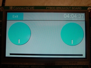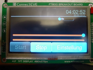 Der Chip hat nicht wie übelich einen Framebuffer in den man schreiben muß, sondern eine Pipeline in die man fertige Objekt ablegt, so gibt es Tasten, Schieberegler, Uhren, Knobs, Slieder, Progressbars, Linien, Rechtecke, Kreisen, Tachometer, Spinner etc. Ich war zum Anfang auch eher skeptisch ob das funktioniert, aber das ist beeindruckend, quasi Echtzeit. Und das bei Anschluß über SPI+2 Leitung für Powerdown(notwendig) und Interupt(kann) und zusätzlichen CS-ROM(kann). Dazu benutzt der Chip 2 Displaylisten von denen eine zur Anzeige benutzt wird und die anderen kann man schon beschreiben und auf Befehl hin wird zwischen beiden gewechselt. EIne Liste kann 4 KByte groß sein, um eine Progressbar darzustellen braucht man 20 Bytes, wenn man vorher noch die Farben wechselt sind es 32 Bytes. Bei jedem dieser Objekte kann man einstellen ob sie durch auf den integrierten Touchcontroller (inklusive Interupt) reagieren sollen und somit sind mit ein paar Zeilen fertige Screens mit Interaktion fertig. Das ganze wird noch durch die Soundausgabe gekrönt, ok die Jungs bezeichne das als Syntesizer, naja ein klasse Rechteckgenerator, aber um ein Tastenklick zu erzeugen geht nix einfacher, den erzeugt man inklusive Volumkontrolle mit 3 Bytes. Der Chip kann nebenher noch JPEG darstellen und WAV-Dateien abspielen. Dazu ist ein 256 KB großer Buffer im Chip, in dem man diese ablegen kann und dann mit ca 32 Bytes eine solche Grafik anzeigt oder ein WAV abspielt. Da ich festgestellt habe das 256 KB nicht so viel sind, spendiere ich dem Treiber ein SPI-ROM inklusive Verwaltung das man dort bis zu 4 MByte an Dateien vorhalten kann und diese bei Bedarf in den Chip schiebt und dort dann anzeigen kann. Der dazu nötige Resourcenverwalter ist soweit fertig.
